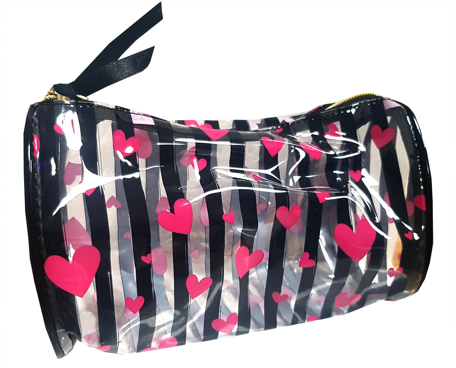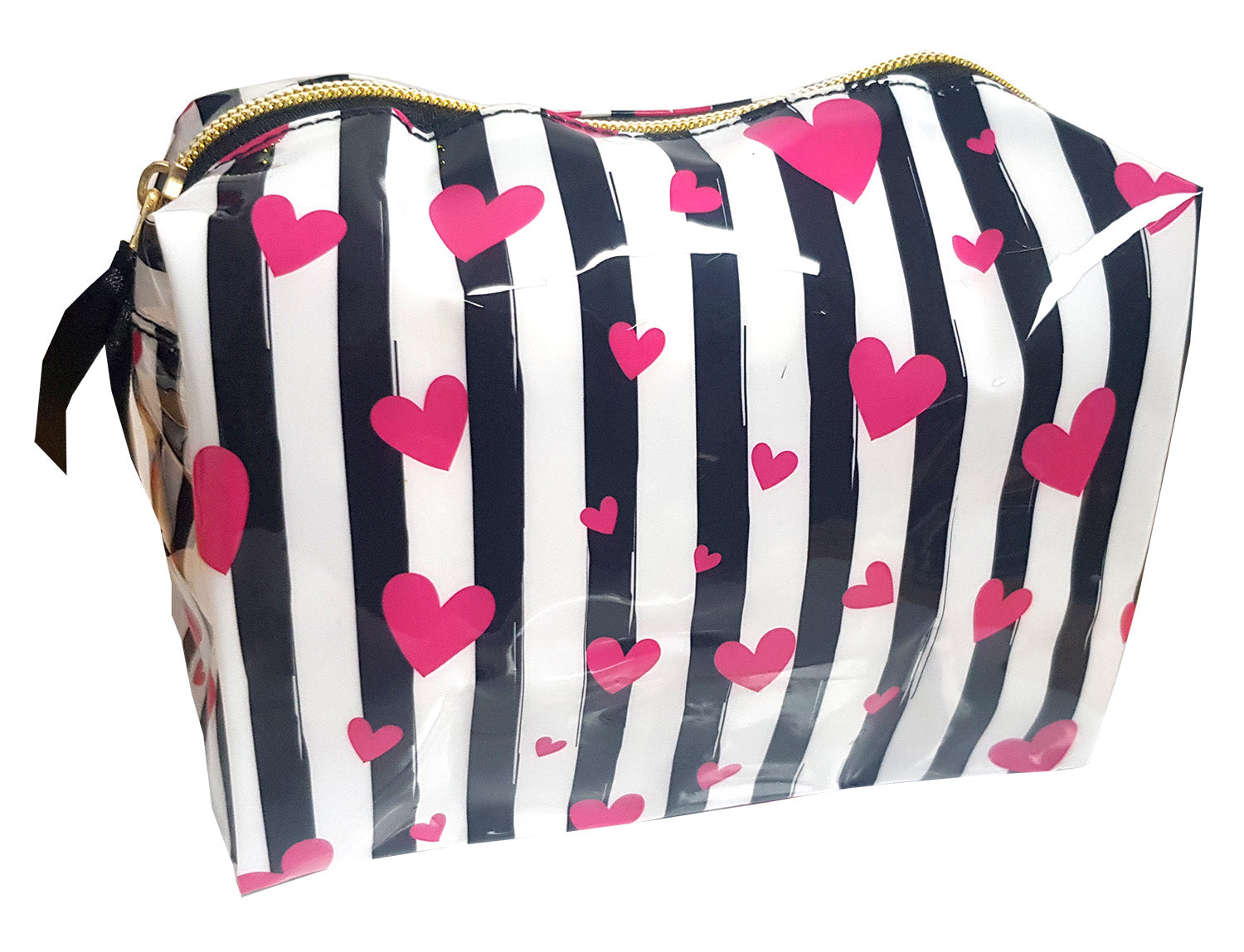 Cosmetic Bag - Hearts and Black Stripes transparent