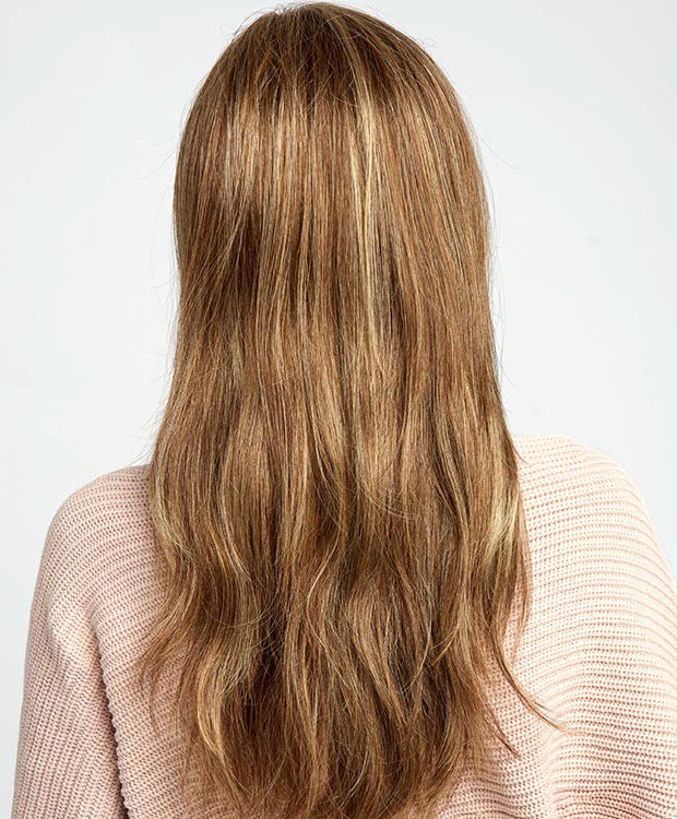 Long layers fall to mid-back to create this full, flowing silhouette. Each softly sculpted wave is designed to add interest and movement to this long style. The Sheer Indulgence™ lace front monofilament part allows for off-the-face styling, and parting options.